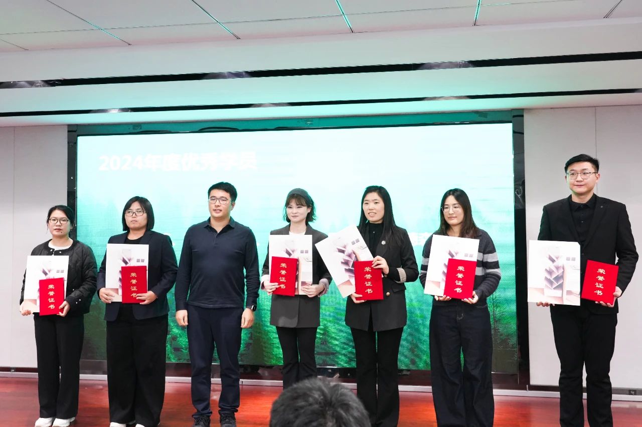 优秀学员代表孟德森、李阳上台发言,围绕自身学习感悟、今后工作方向等内容,与全体学员进行了分享。孟德森表示,感谢公司给予此次机会与平台,2025年将慎思笃行,让三个超强刻在脑子里,落实在行动上,为新港扬帆启航贡献力量。
