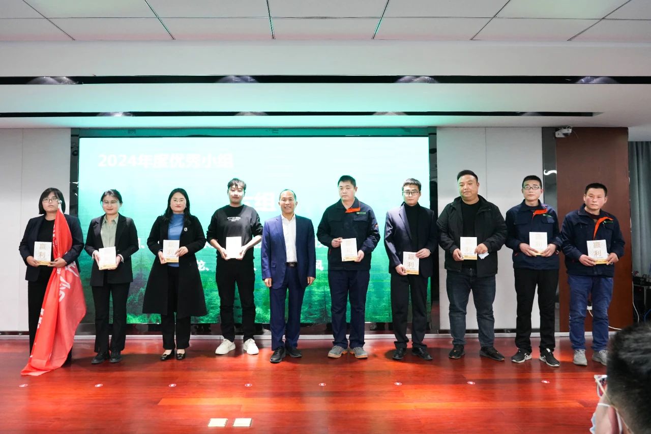 现场,对2024年度优秀小组、优秀学员进行表彰,新港集团董事长魏孝新为获奖班组授旗并颁发奖品,总裁魏子铭为优秀学员颁奖。