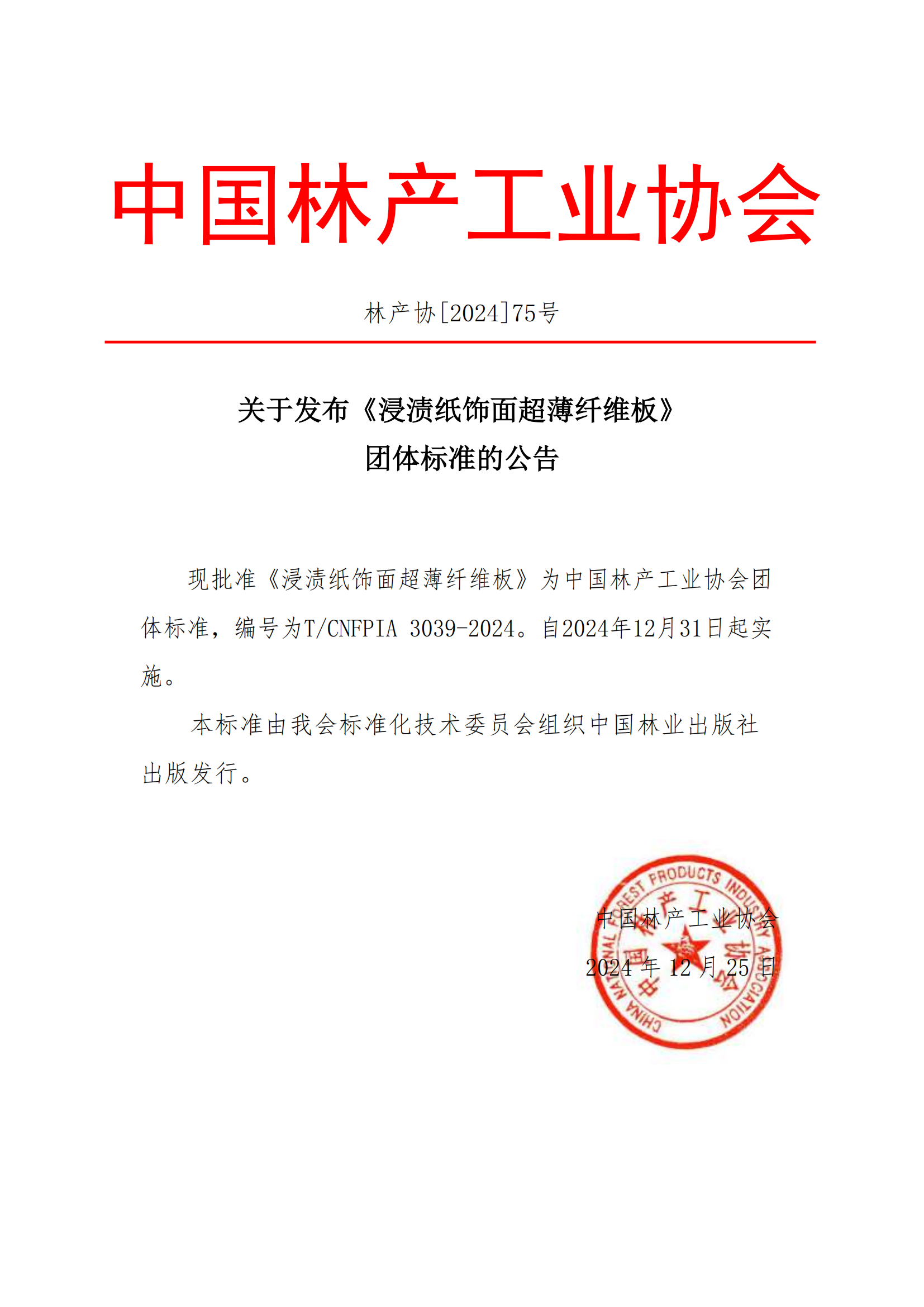 近日,新港集团牵头制定的《浸渍纸饰面超薄纤维板》和《刨花板开料性能评价》团体标准正式发布,于2024年12月31日正式实施,以高标准引领行业发展,推动人造板行业迈向更高水平。