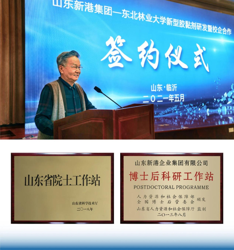 自2018年开始,新港集团就坚定了以研发搏未来的战略路线,在李坚院士的带领下,经过5年多不间断的实验室攻关、生产线小试中试,到规模化生产,新港集团已独家实现仿生无醛胶黏剂在胶合板、多层板、刨花板和超薄纤维板上的规模化批量生产,解决了ENF级板材在下游企业加工制作过程中的痛点和难点,使无醛级产品不再有难做的工艺,产品更加环保、亲近自然。