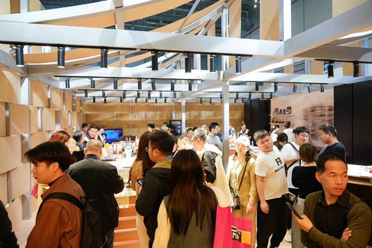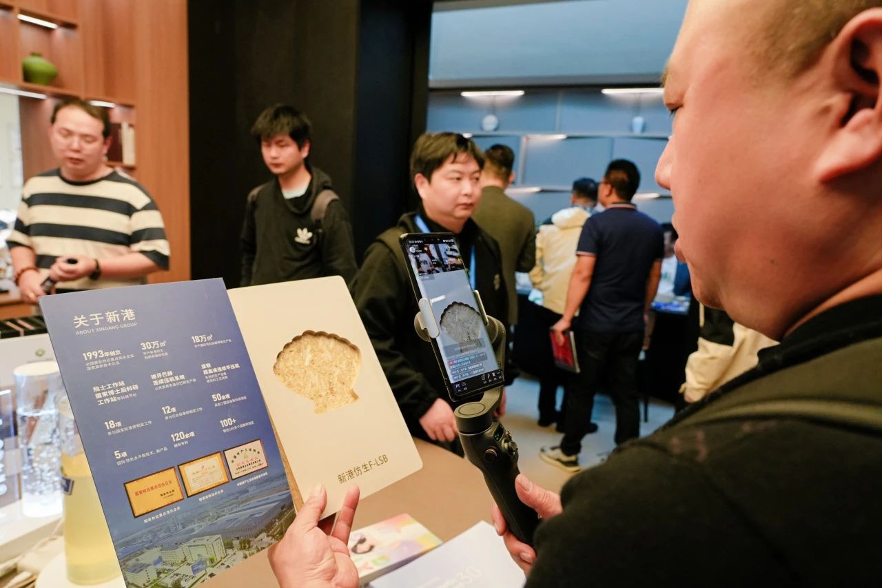 新港仿生精板全新3.0花色在此次展会同样引发了超高的关注度,「柔和与治愈」、「高级与时尚」、「自然与环保」、「活力与个性」四大主题,为观展者带来前沿的视觉享受,赋予家居空间美学新风尚。新港精心打造的馥郁咖啡屋、电竞元宇宙舱、静雅茶室等高定美学互动空间,与华为智能家居生态深度协同,营造一场惊艳的沉浸式感官盛宴,同时吸引了行业媒体、博主探展打卡,驻足品鉴。