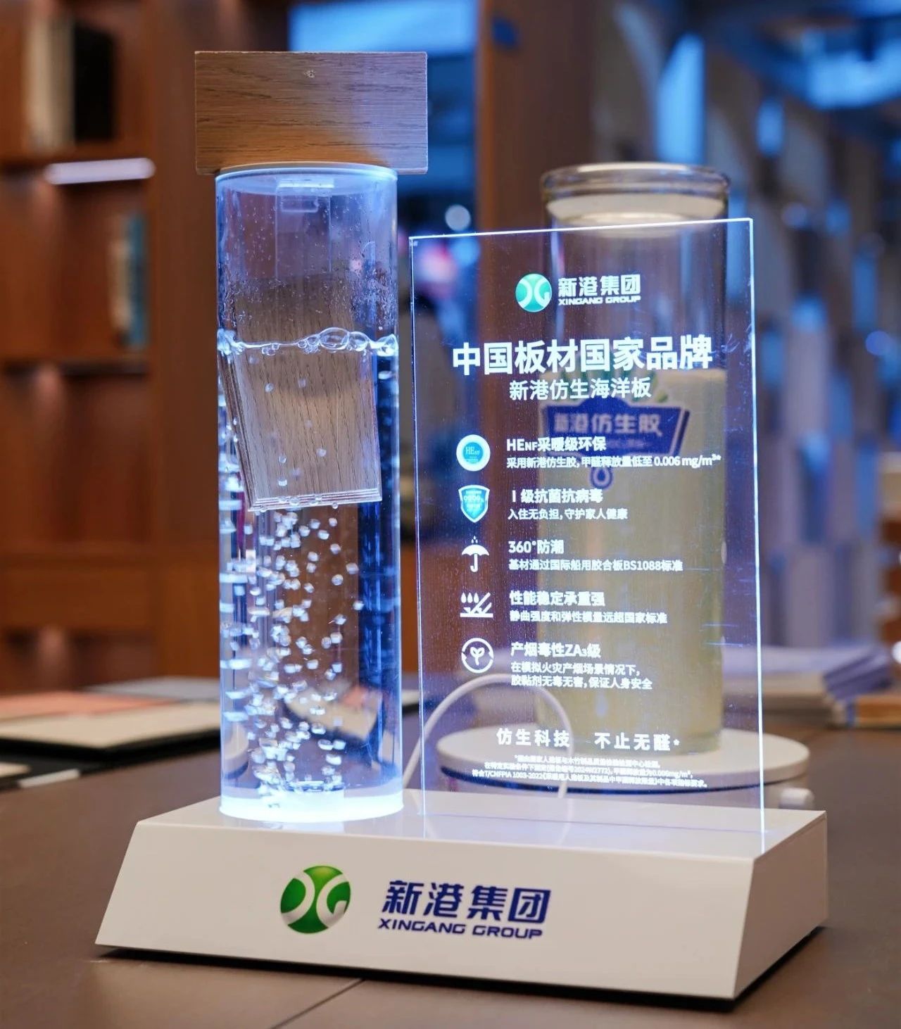 专注环保板材三十余年,新港集团对绿色健康产品的开发和探索从未止步,创新研发了新港仿生超薄纤维板、仿生F-LSB等仿生系列产品,新港仿生海洋板的问世,不仅实现“三板合一”产品矩阵的全覆盖,更推动家居设计从"材料适配"向"空间系统"的范式转变。