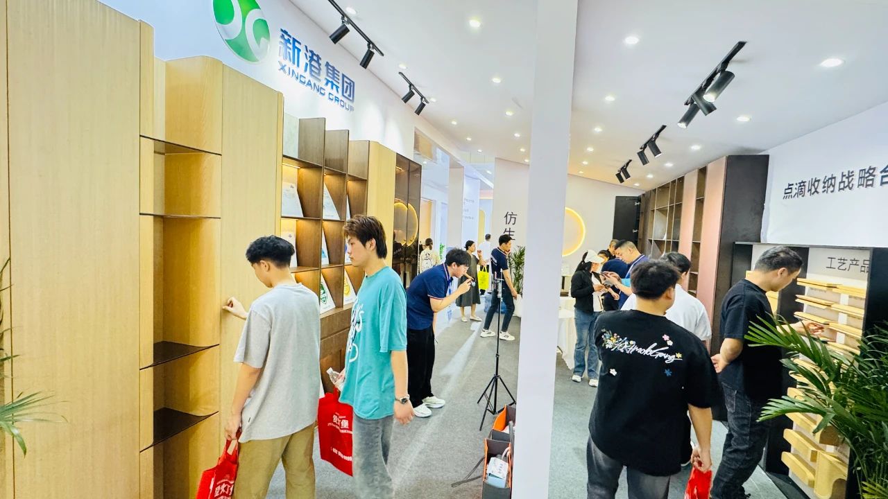 展会现场吸引了大批观众围观,新港用颠覆性仿生科技与极致工艺美学,在本届建博会现场上演了一场"会呼吸"的板材革命。4月16-18日,西部国际博览城 14 号馆 T27 展位,新港期待与您相遇,见证科技与自然的完美共生,解锁高定家居的无限可能!