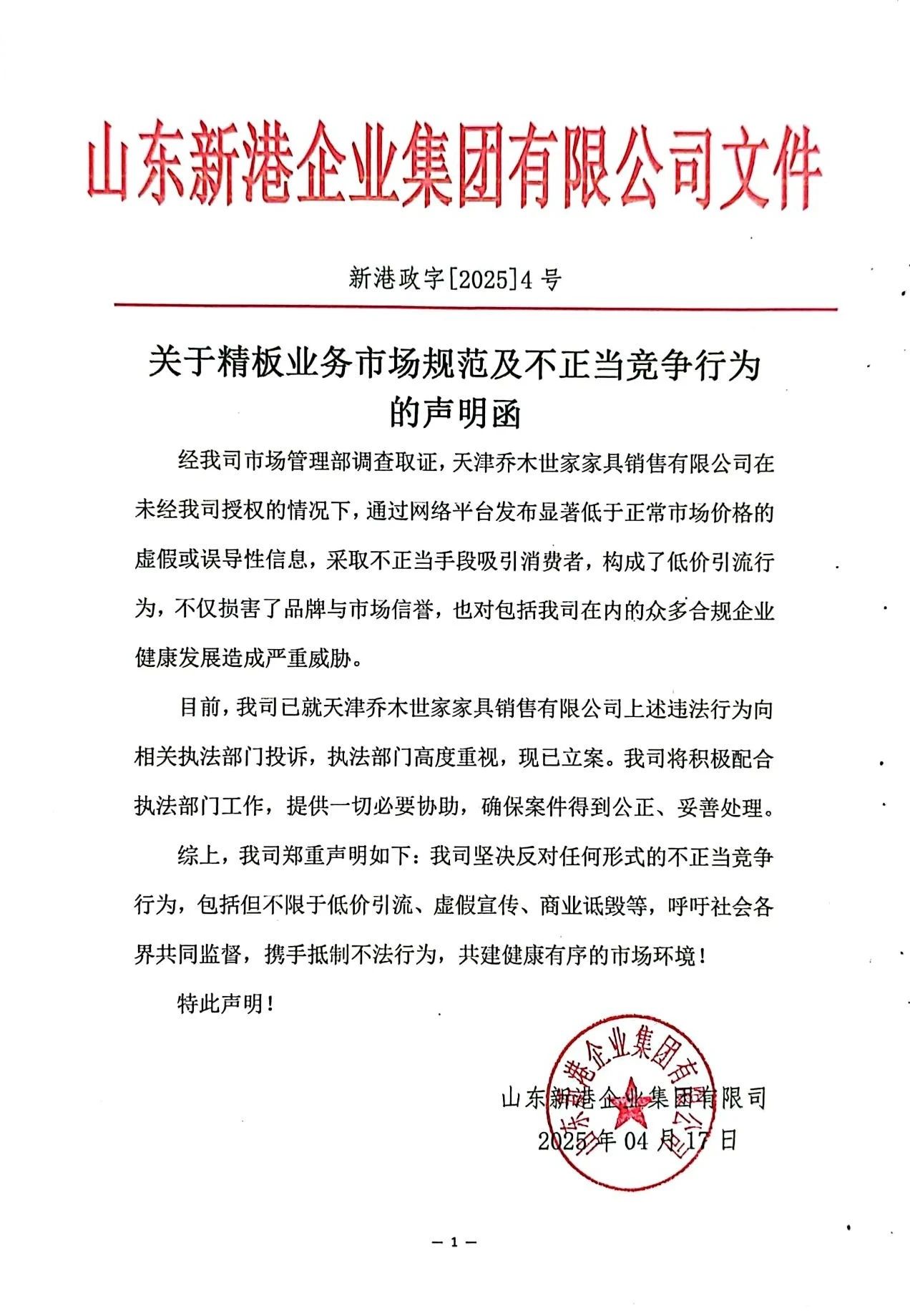 关于精板业务市场规范及不正当竞争行为的声明函