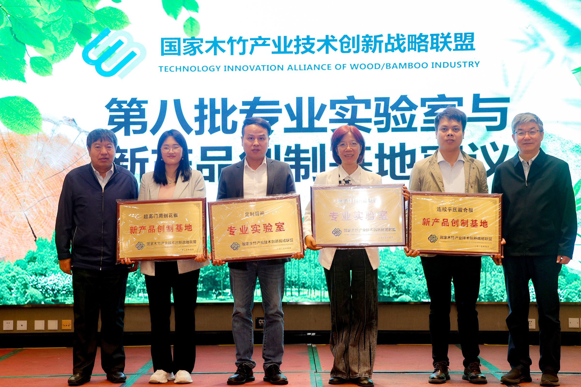 4月21日,在国家木竹产业技术创新战略联盟第三届理事会第五次会议上,新港集团获评“超高门用刨花板新产品创制基地”称号。这一殊荣不仅彰显了企业在人造板领域的技术领导地位,更标志着我国木竹产业在高端板材制造领域取得重大突破。