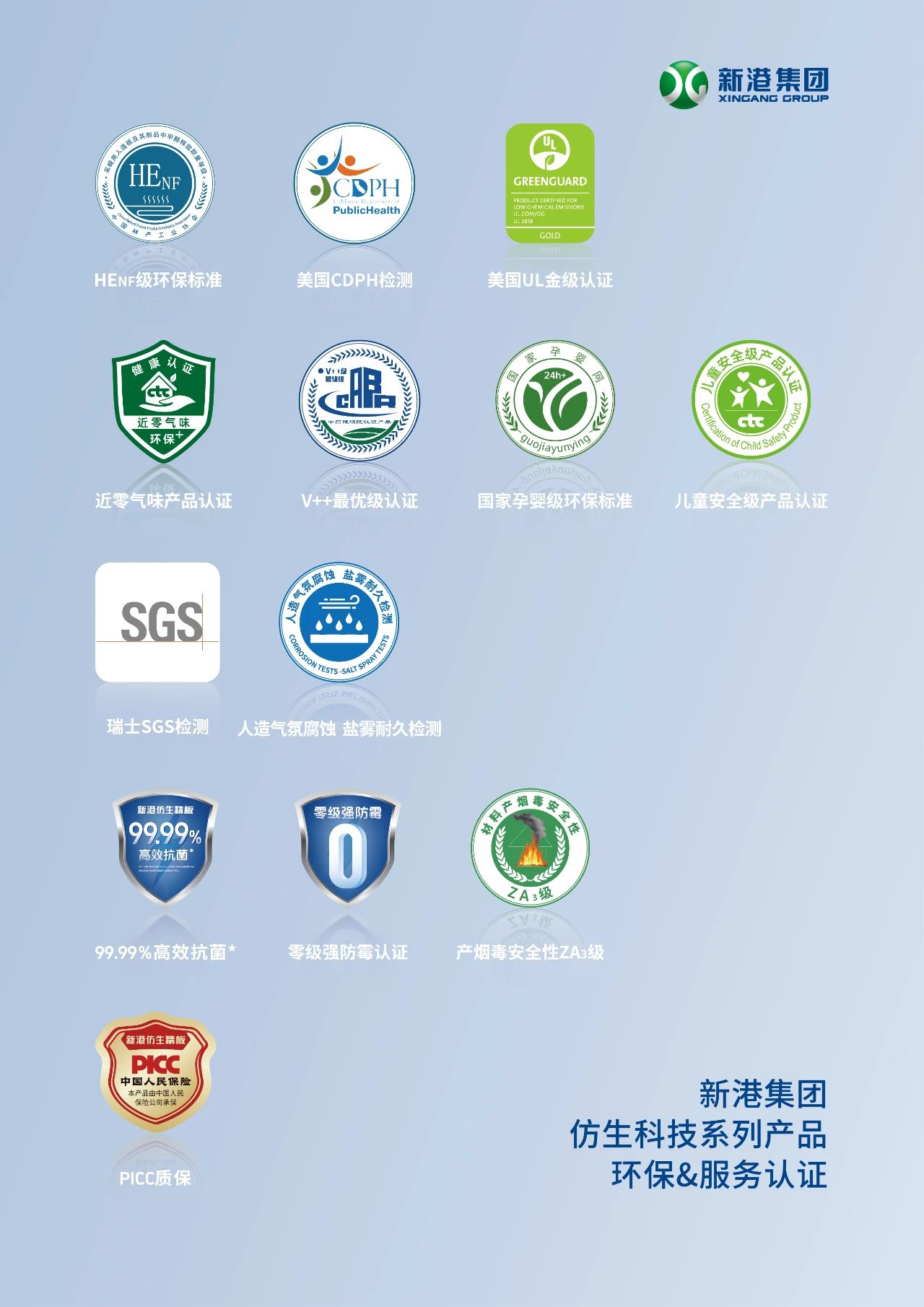 新港拥有行业领先的研究院,3000 多平方米的CNAS 验室,能够实现全球153个国家和地区的互认强大的研发和检测实力,为产品的品质提供了坚实的保障,打造出了备受信赖的仿生产品矩阵和仿生室内空间。