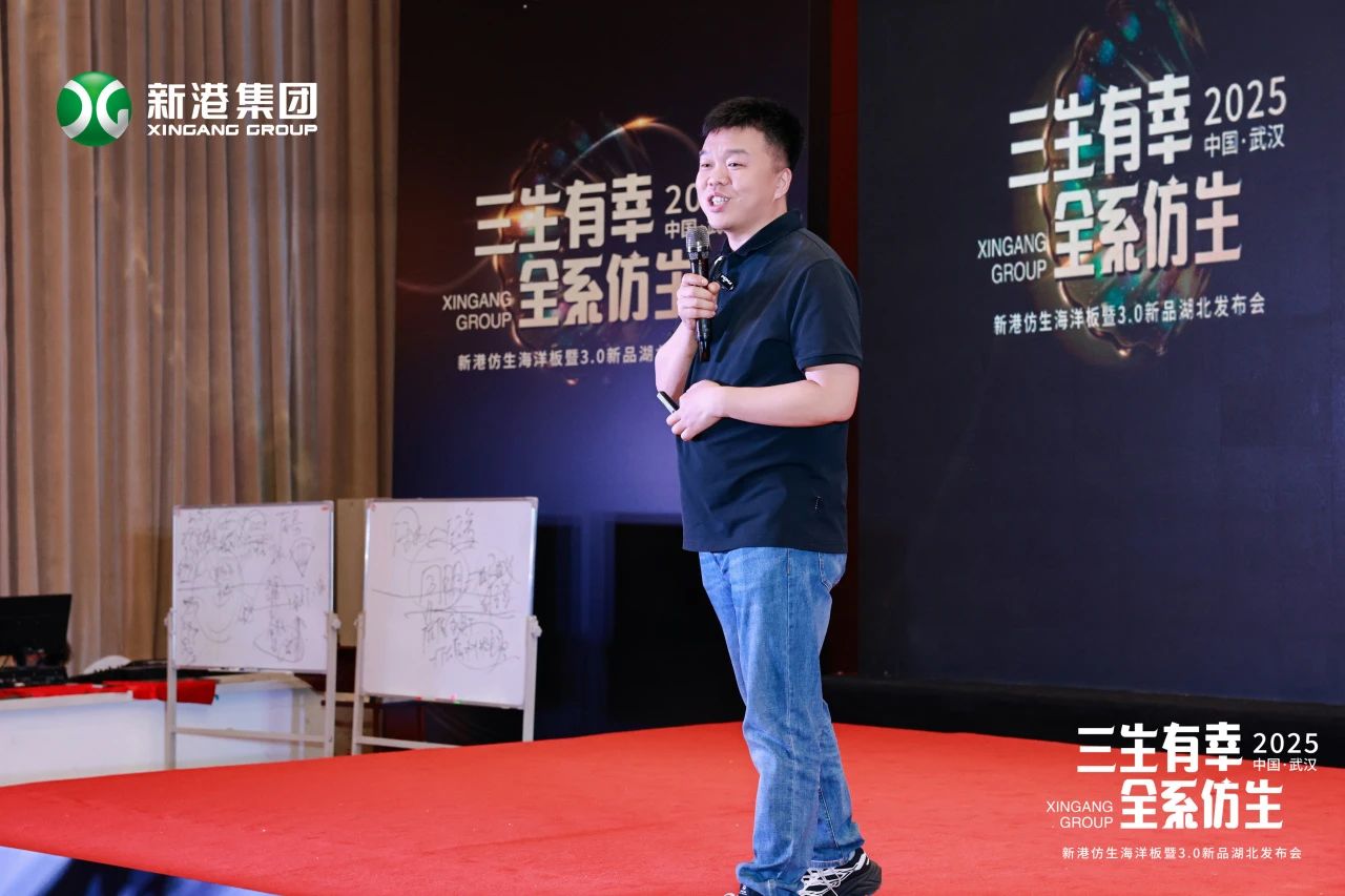 4月的品牌万里行最后一站,我们来到了武汉,这座充满活力与英雄气息的城市。新港仿生海洋板、全新3.0花色再次闪耀登场。此次会议中,主题演讲环节成为全场关注的焦点。新港集团副总裁姜总、首席产品顾问刘若一老师以及系统柜阿穆特老张依次上台,带来了精彩且富有深度的分享。