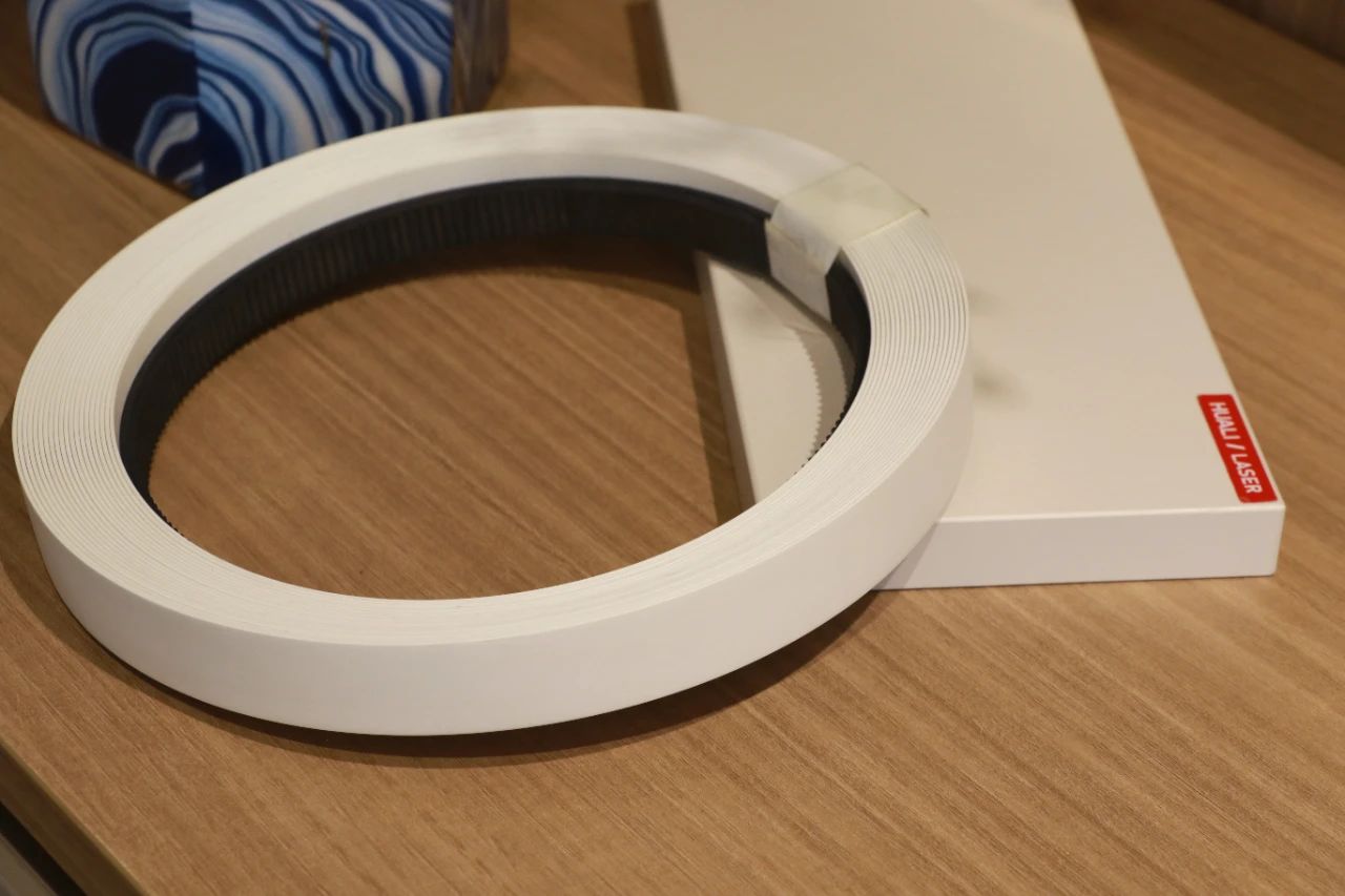 激光封边条使用ABS树脂为基材,表面印刷水性油墨,不含甲醛,环保无害,无气味。ABS树脂属于可降解材料,对比普通PVC封边条加环保。