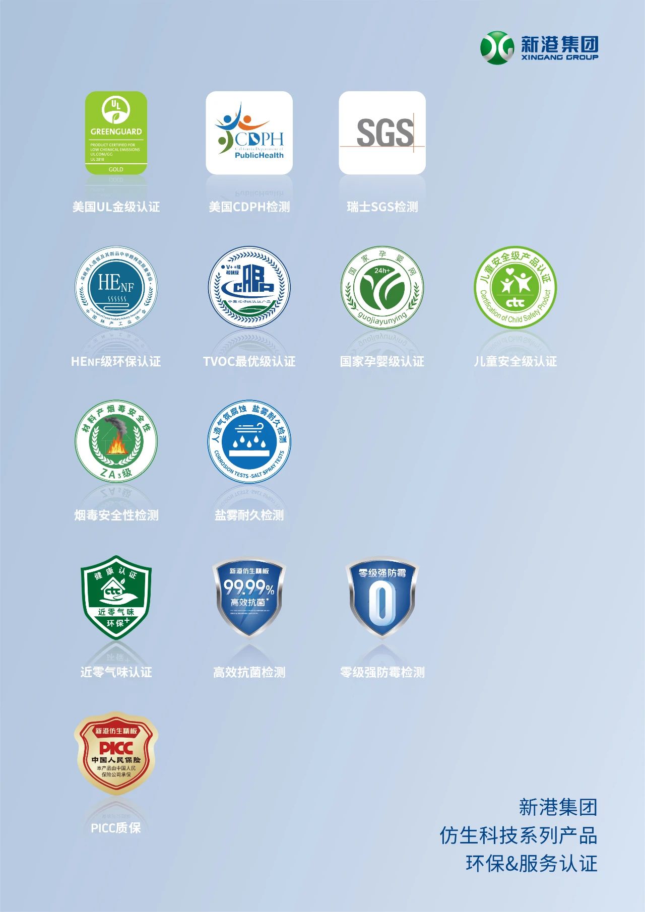 新港更以全球30余项权威认证加冕,成功树立了“孕婴级健康”、“儿童安全级保障”、“0级强防霉”三大环保标杆!以极致环保,定义未来人居新标准!