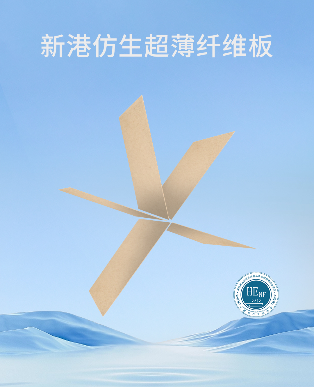 新港仿生超薄纤维板,厚度薄至0.5mm,具有自动化生产、厚度薄、表面平整光洁、柔塑性优异和易于加工等独特优势,环保性、防水性、柔韧性、耐候性和加工性能出色,产品被评定为国际领先水平。解决了板材市场中出现的加工效率低、甲醛含量高、饰面效果差等行业痛点,配合仿生技术、新材料技术等核心技术,赋予产品良好的加工性能,符合当下市场健康家居消费需求,为实施国家“十四五”规划要求战略目标贡献力量。
