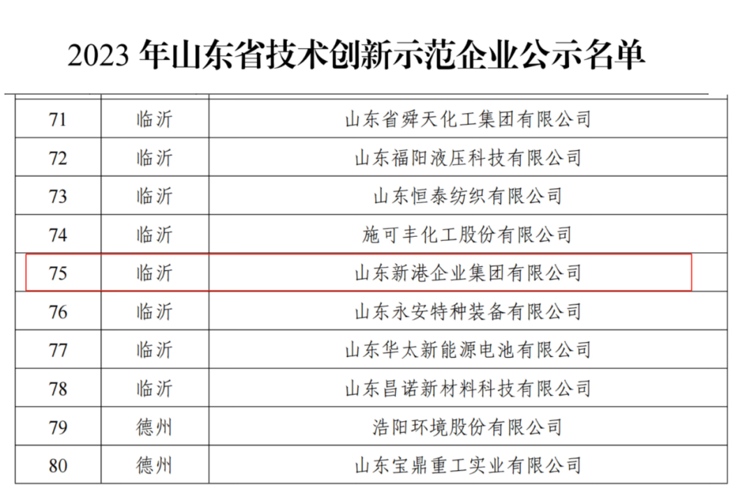 10月24日,山东省工业和信息化厅公示了2023年度山东省技术创新示范企业名单,新港集团以核心技术实力成功入选。