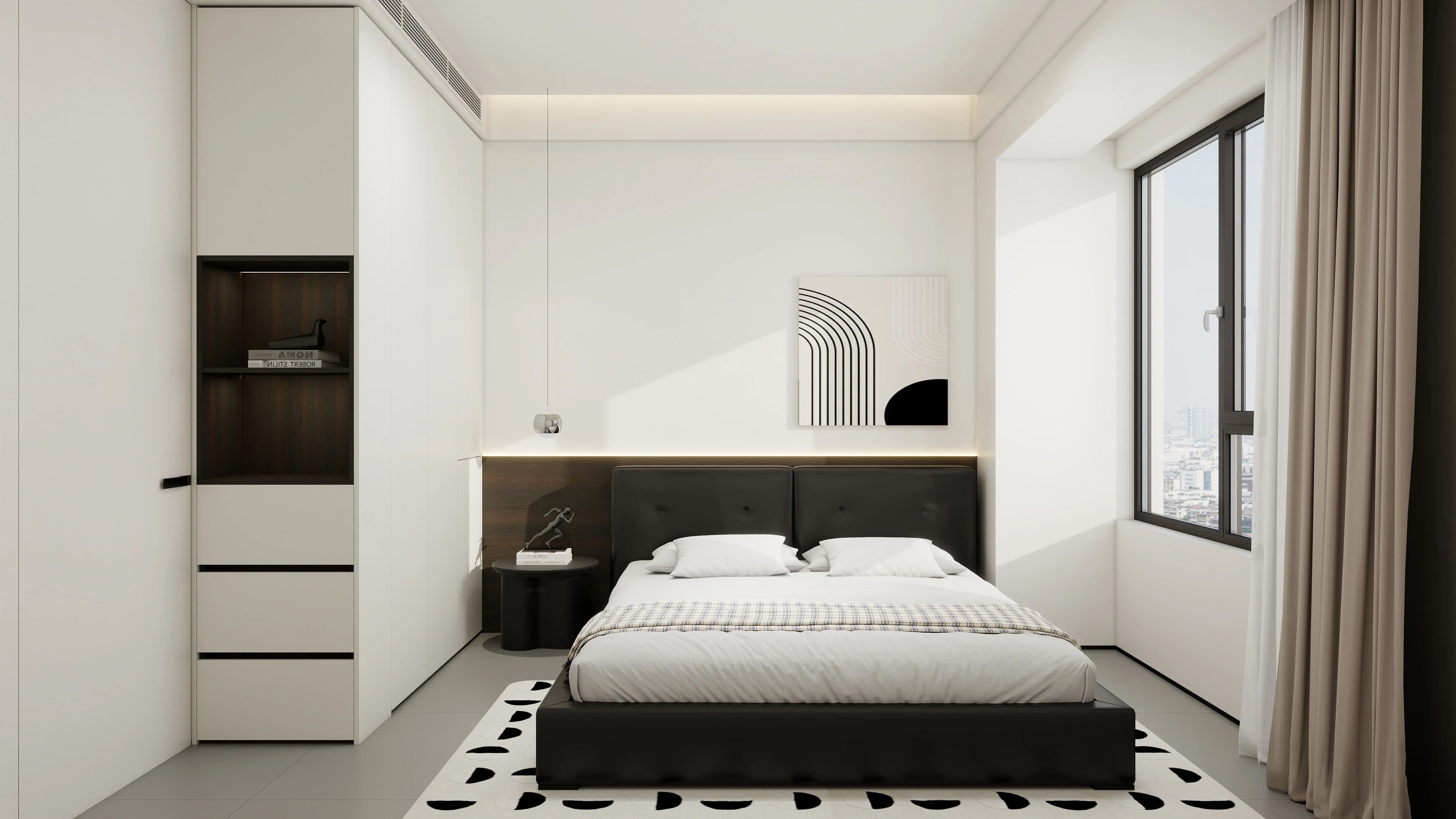 当空间归于极简时,更能展现出雅白的魅力。这间卧室,只采用黑、白、卡其三种常见却自带高级感的色彩。雅白衣柜正面窗户,随着一天中阳光照射的强度与角度的变化,柜体自然呈现出渐变的色彩。晨曦的温润、日光的温暖、夕阳的灿烂,都在这小小的衣柜里收纳。
