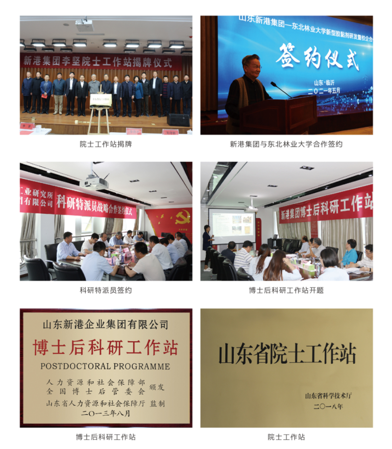 2018年新港集团与中国工程院李坚院士合作建设新港院士工作站,聚焦无醛环保低碳人造板制造领域重大关键技术,全力攻克“无醛”仿生胶黏剂及无醛仿生人造板技术,成功并规模应用于三大人造板的生产加工制造中,生产工艺稳定,产品力学性能满足国家标准要求,无甲醛、VOCs添加,环保性能达到国家标准要求,是我国乃至世界林业产业转型升级的新型核心技术。