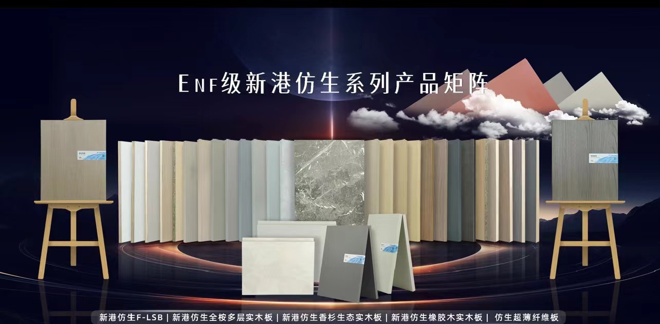 过去一年新港集团深入全国28座城市,与家具厂、经销商及消费者对板材产品的需求进行广泛的交流调研。基于这些真实深度的调研,新港集团正式推出全新的Enf级仿生系列产品矩阵。包括新港仿生F-LSB、新港仿生全桉多层实木板、新港仿生橡胶木实木板、新港仿生香杉生态实木板、新港仿生超薄纤维板和新港仿生PB板。其中,Enf级仿生超薄纤维板不仅能用作家具板、地板的表面平衡层,木线条、弯曲造型的表面包覆材料,甚至可以实现3D打印花色,完成纤维板从平衡层到饰面层的华丽转身。