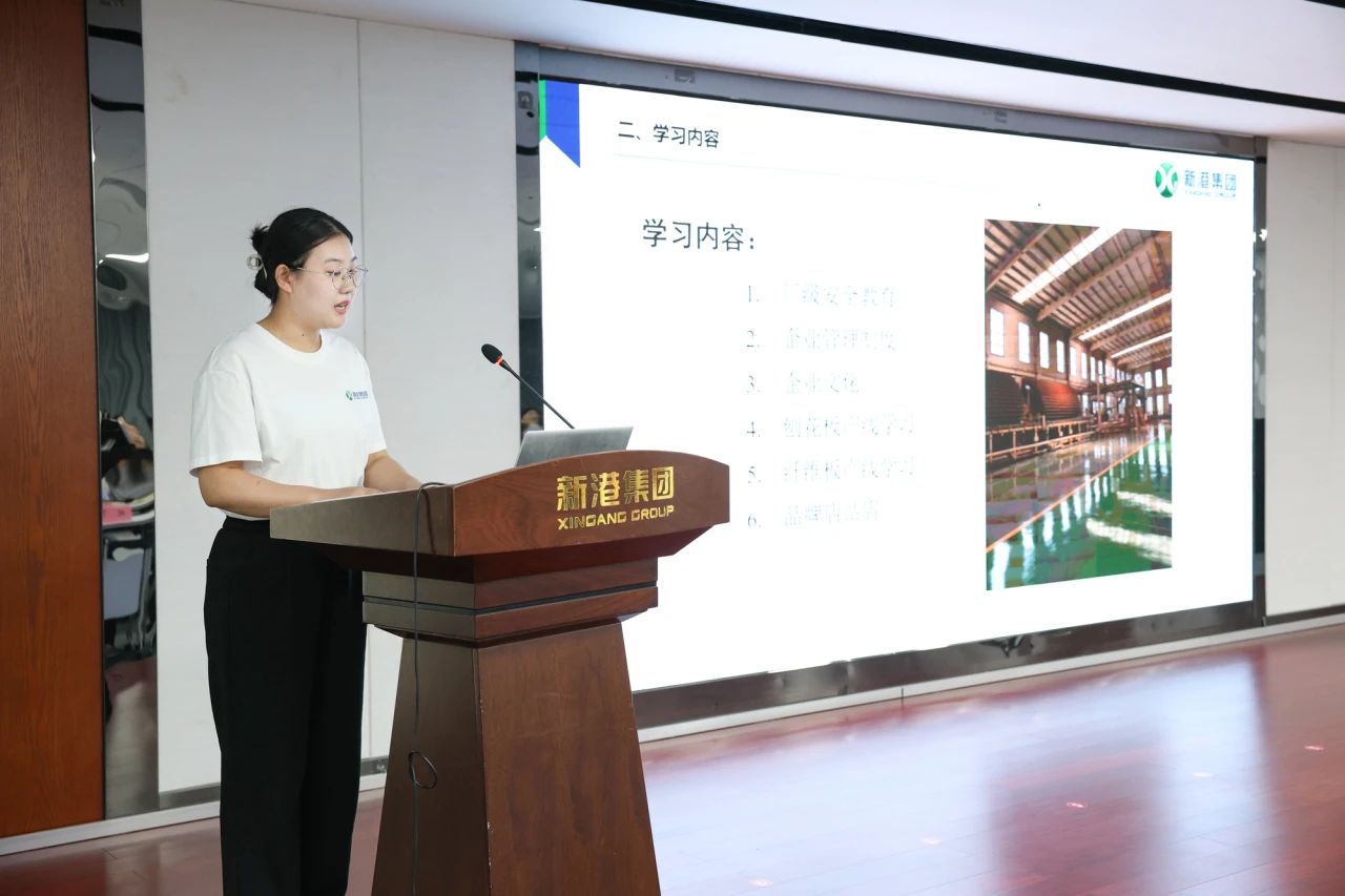 9月26日,新港之翼特训营结业仪式顺利举行。新港集团董事长魏孝新,副总裁刘颖、姜婷婷,研究院总监闵德秀,刨花板生产线负责人刘晓亮,纤维板生产线负责人刘飞,以及陪伴小翅膀度过宝贵时光的各位师傅们到场参与仪式,共同见证新员工们的成长与收获。在奏唱国歌、新港之歌后,与会人员通过观看培训期间的精彩片段展示,回顾了特训营期间的难忘时光。每位小翅膀怀揣着对未来的憧憬和对公司的高度认同,毅然决然地选择了新港,从初见时的陌生到如今的默契无间,从基础理论的学习到实际操作的熟练掌握,每一步都凝结着汗水与智慧,都展现出他们非凡的毅力与才华,这一切的背后,离不开师傅们的悉心指导与无私奉献。