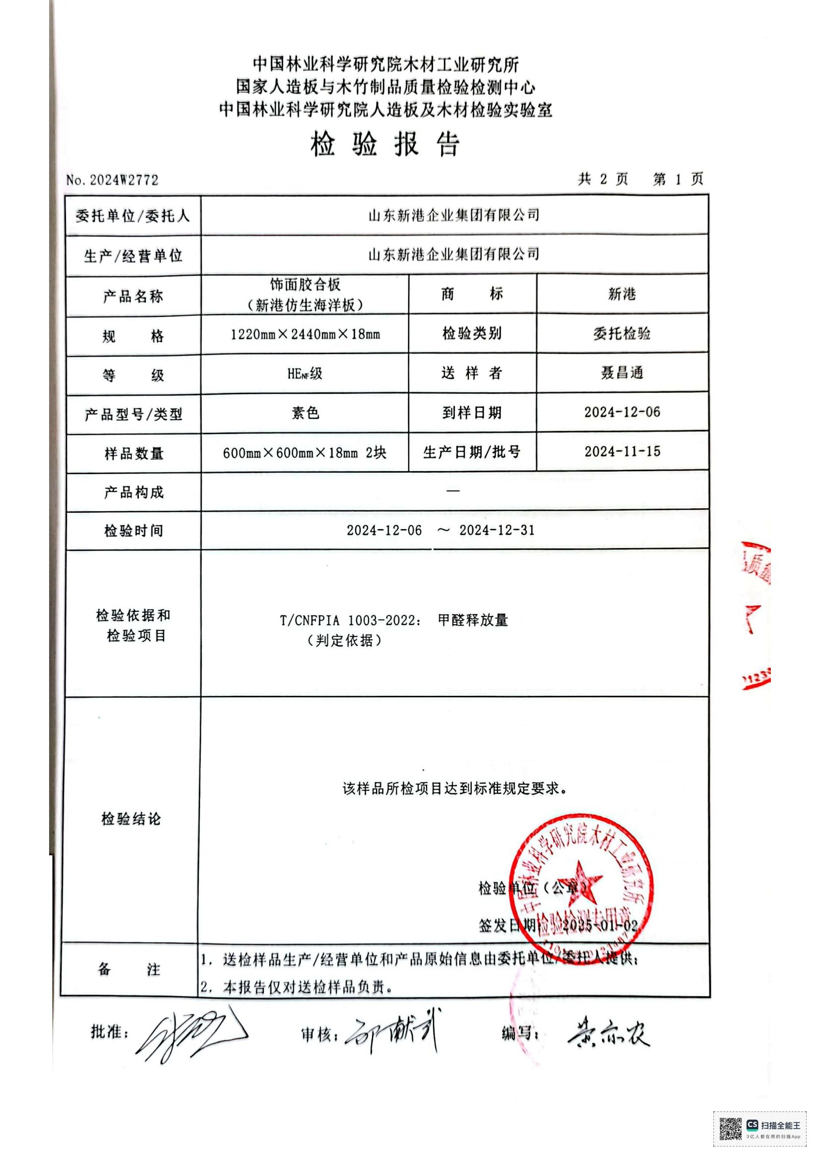 HENF级新港仿生海洋板是一种集高环保、高性能和多功能于一身的高端木质新材料。产品精心甄选优质原木,创新采用新港仿生胶,实现了“超无醛、耐潮湿、抗腐蚀”的卓越性能,重新定义环保标杆。